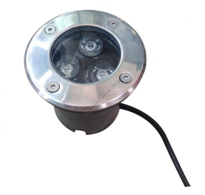 Φωτιστικό δαπέδου για υπόγεια τοποθέτηση με LED Epistar 3 x 1W τροφοδοσία 12V DC και βαθμό προστασίας κατά IP65 HLD-630 (HLD-630)