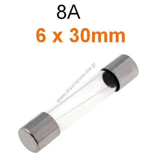 Ασφάλεια Γυάλινη 8Α μεγάλη 6 x 30mm (10τμχ) 8A