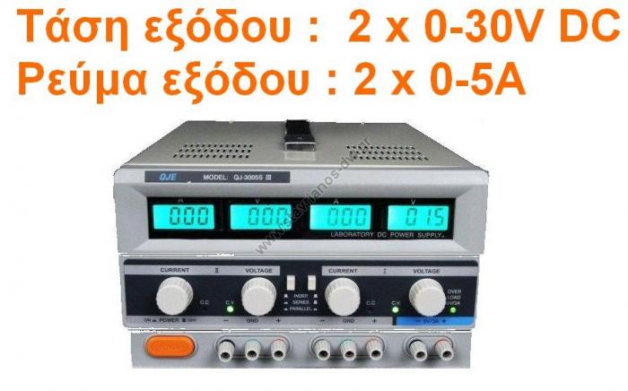 QJ-3005CIII Τροφοδοτικό εργαστηρίου 2 Εξόδων με ρεύμα εξόδου 2 x 0-5A και τάση εξόδου 2 x 0-30VDC