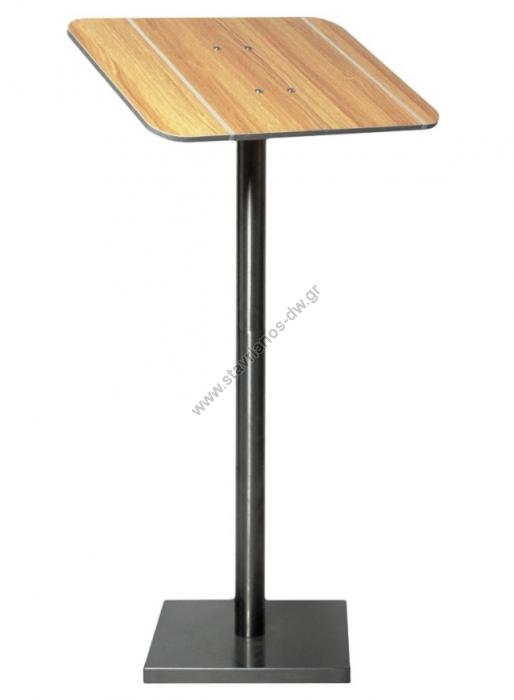 Επιδαπέδιο Σταντ για προβολή καταλόγων MENU με ανοξείδωτη κολώνα και Ξύλινο Stand χρώμα Teak DW-30661