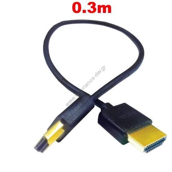 Καλώδιο HDMI αρσενικό 19pin σε HDMI αρσενικό 19pin High Speed σε μήκος 0.3m HDMI-0.5M