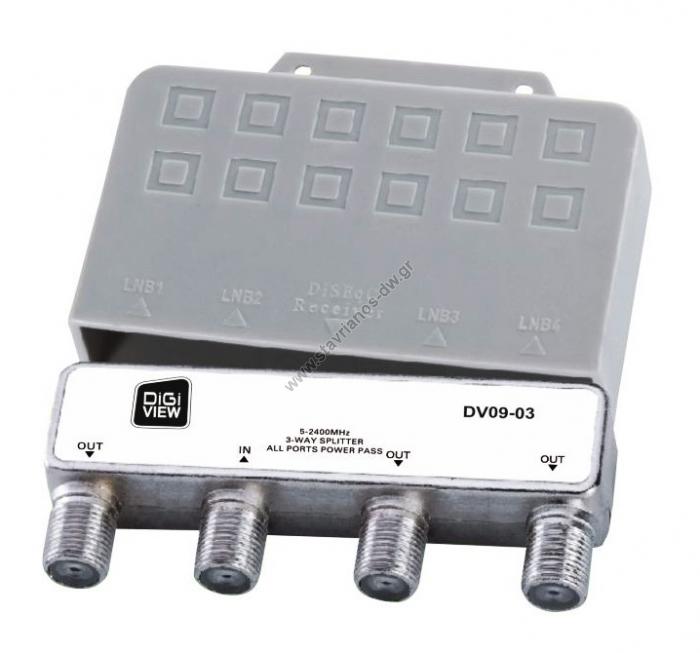 Διακλαδωτήρας - Splitter επίγειος και δορυφορικός 3 εξόδων με διέλευση τάσης για εξωτερικό χώρο DV09-03