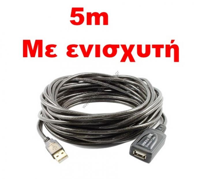 Καλώδιο USB 2.0 Προέκτασης αρσενικό σε USB θηλυκό με ενισχυτή σε μήκος 5m 30635