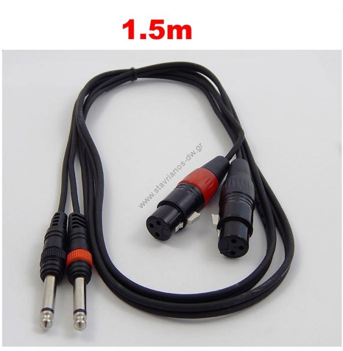 Καλώδιο CANNON 2 X ( XLR) Θηλυκά σε 2 X Καρφιά 6.3mm αρσενικά με μήκος 1.5m TPC-023
