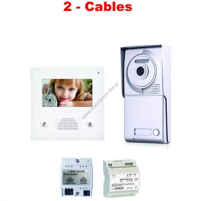 2-CABLES VIDEO DOOR KIT 1 Κίτ Θυροτηλεόρασης έγχρωμη με 2 καλώδια με 1 κουδούνι
