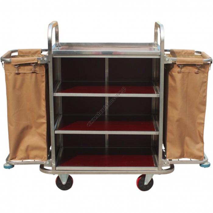 Τρόλεϊ καμαριέρας με 3 ράφια & 2 σάκους INOX + ξύλο MDF DW-40771