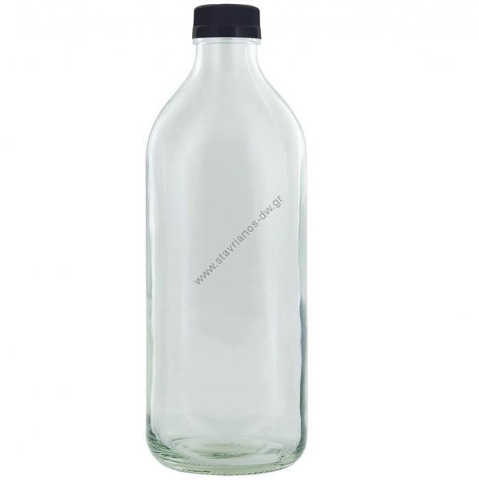Γυάλινη φιάλη διάφανη με χωρητικότητα 1000ml και μαύρο καπάκι DW-40824