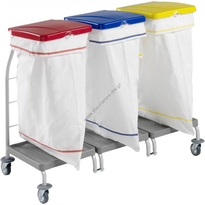 - Καρότσι απλύτων (λινών) για 3 σάκους 70 Lt (δεν περιλαμβάνονται) με καπάκι