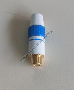 Φίς RCA θηλυκό προεκτάσεως μεταλλικό σε χρώμα ασπρο με μπλέ ρίγα