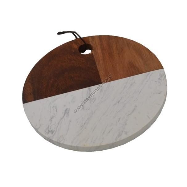 Μαρμάρινο πλατό σερβιρίσματος με διάσταση φ20.5cm και συνδιασμό Λευκό μάρμαρο/ξύλο DW-44650