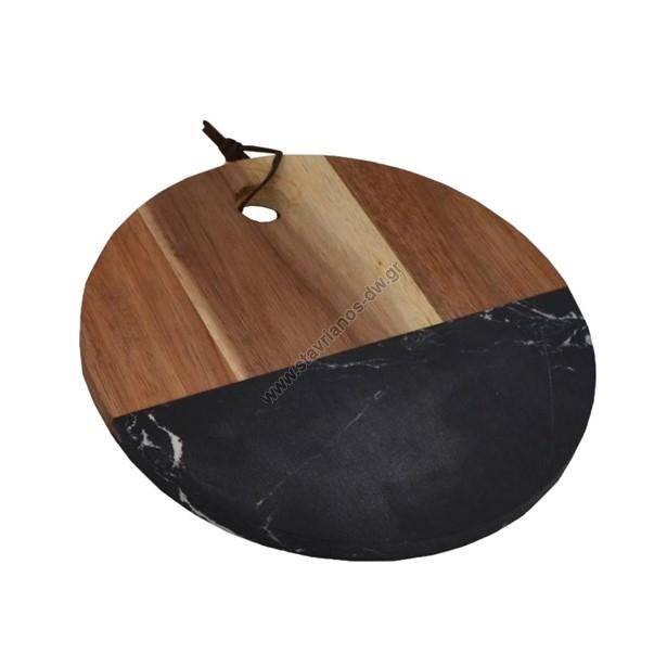 Μαρμάρινο πλατό σερβιρίσματος με διάσταση φ20.5cm και συνδιασμό μαύρο μάρμαρο/ξύλο DW-44697