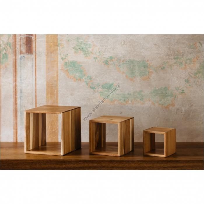 Σταντ Παρουσίασης 3 τεμαχίων απο Ξύλο ακακίας σε σχήμα τετράγωνοΔιαστάσεις :