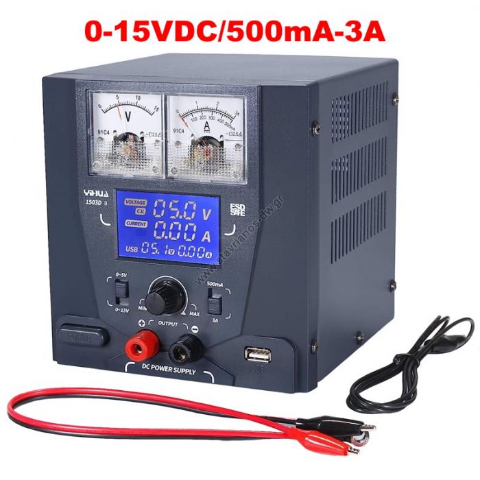 Ρυθμιζόμενο : 0 - 15V DC / 500mA - 3A
