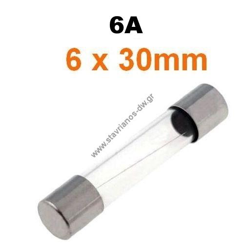 Ασφάλεια Γυάλινη 6Α μεγάλη 6 x 30mm (32mm) (10τμχ) 6A
