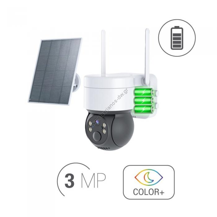 Έγχρωμη κάμερα 3MP PTZ Wifi με ηλιακό πάνελ και μπαταρίες IP D/N DW-8047029