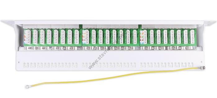Patch panel κατηγορίας CAT 6A STP 24 θυρών σε γκρι χρώμα.