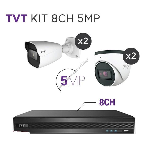 TVT KIT 8CH 5MP Κάμερες 4 τμχ DOME (2) + BULLET (2) + DVR 8CH με ανάλυση 5MP και φακό 3.6mm