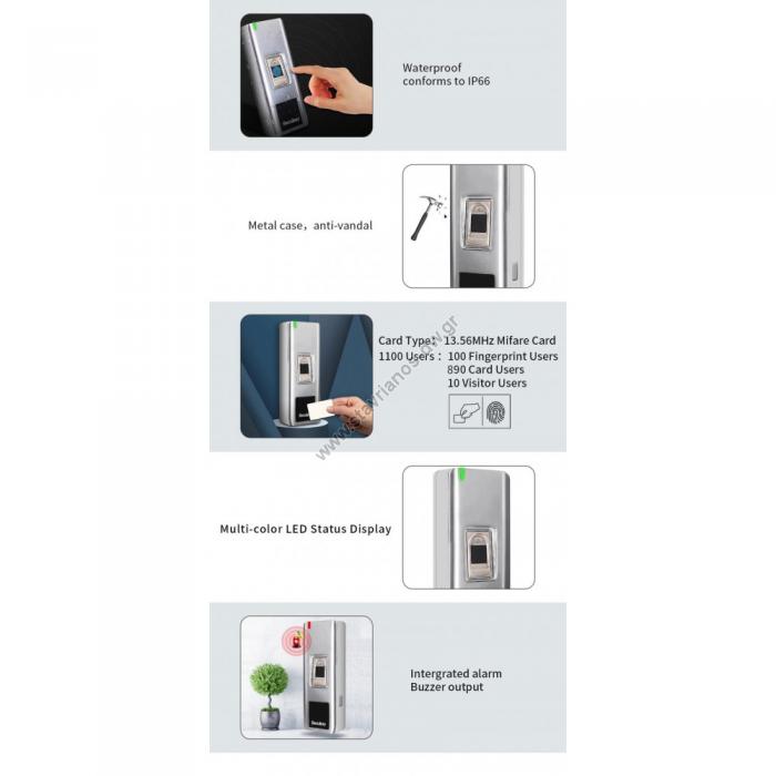 SF4 Αυτόνομο σύστημα ελέγχου πρόσβασης μεταλλικό, με αναγνώστη για κάρτες προσέγγισης και αναγνώστη για δακτυλικό αποτύπωμα