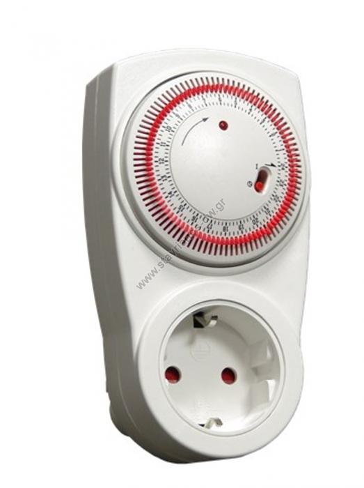 Χρονοδιακόπτης πρίζας μηχανικός ημερήσιος με ελάχιστο χρόνο ρύθμισης ανα 15 λεπτά TG-01A