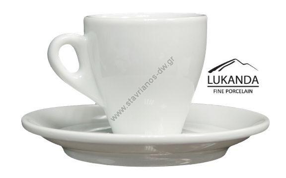 Φλυτζάνι με πιατάκι πορσελάνης με χωρητικότητα 180cc σε χρώμα λευκό της Lukanda DW-P185
