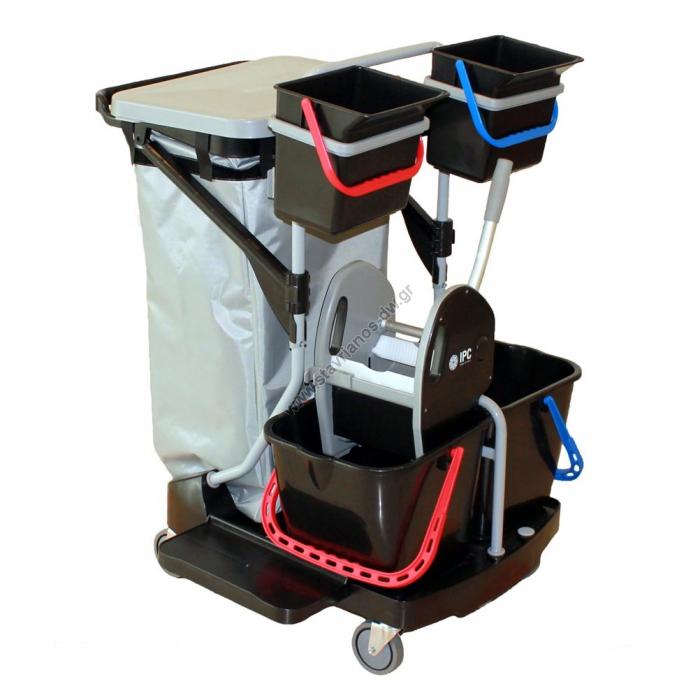 Πλήρες καρότσι σφουγγαρίσματος με κουβάδες πρέσσα σακούλα απορρ.