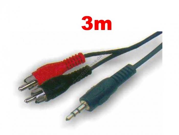 Καλώδιο καρφί 3,5mm stereo αρσενικό σε 2 x RCA αρσενικά σε μήκος 3m 30183A-3M