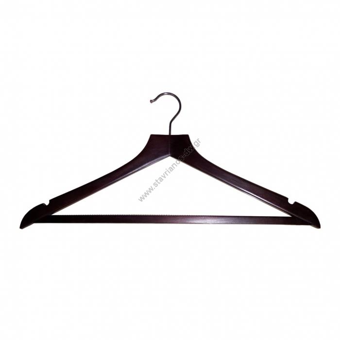 Κρεμάστρα ξύλινη σε απόχρωση καρυδιάς με ράβδοΠάχος κρεμάστρας : 1.2cm.