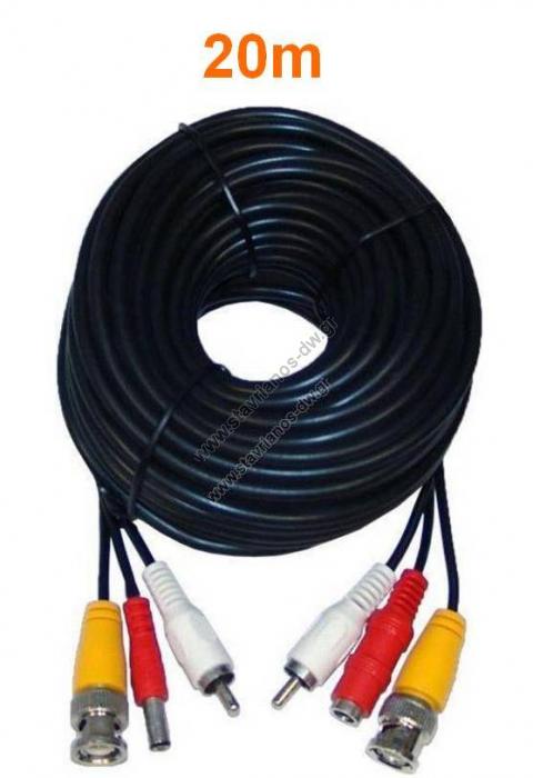 VCA-20 Καλώδιο CCTV 20m (Ετοιμο) με φίς Video BNC A/Α+Αudio (RCA A/A)+DC (A/Θ)